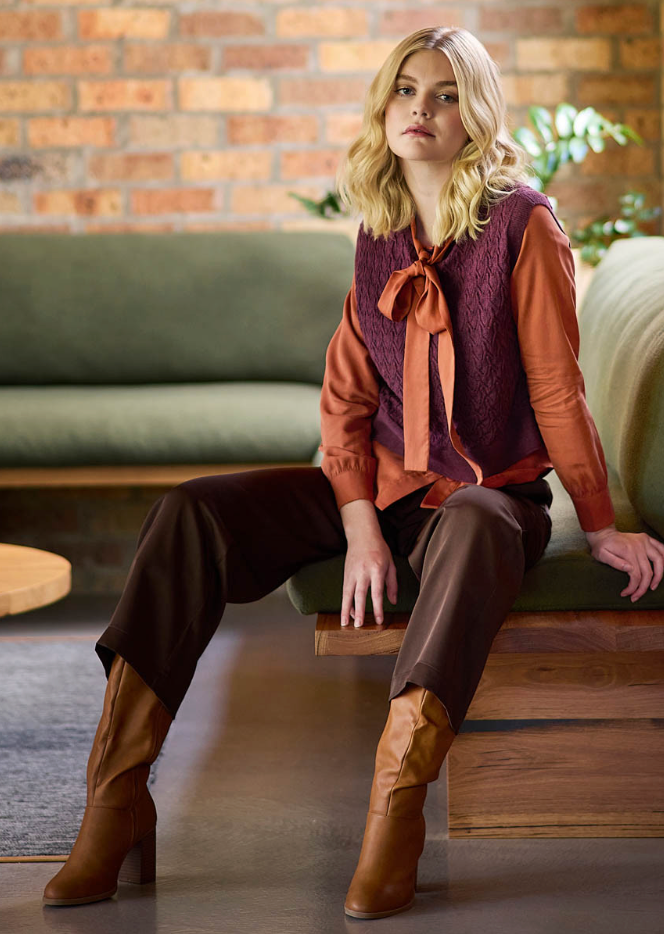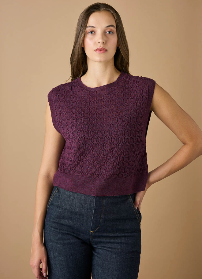 Delicate yet daring, the new Kitty Vest brings a touch of romance to modern layering. Intricately crafted in an airy lace stitch and featuring a cropped length, this piece will be your go-to for effortless sophistication. Wear it over a crisp shirt or style it solo with your favourite jeans or skirt.