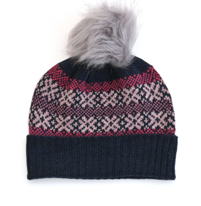 Embrace the magic of winter with the Heidi beanie. Featuring a delicate snowflake Fair Isle design, it captures the charm of the season with a Nordic-inspired feel. Topped with a luxe faux fur pompom, Heidi strikes the perfect balance between cozy and playful.