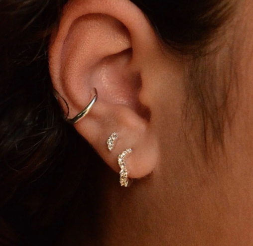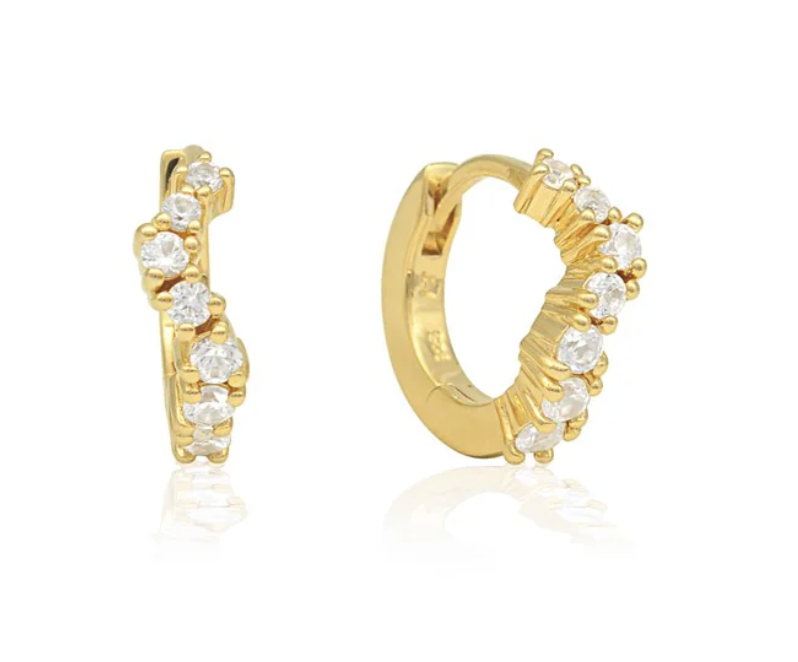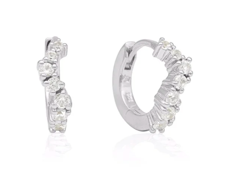 Huggie earrings featuring graduated lab-grown white sapphires. Everyday huggie earrings to layer or wear solo.