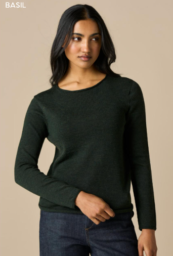 A lightweight foundation knit which is neat enough for layering under jackets and shrugs. Knitted from extra fine merino wool, this long sleeve jersey top is a versatile staple finished with a relaxed crew neckline.