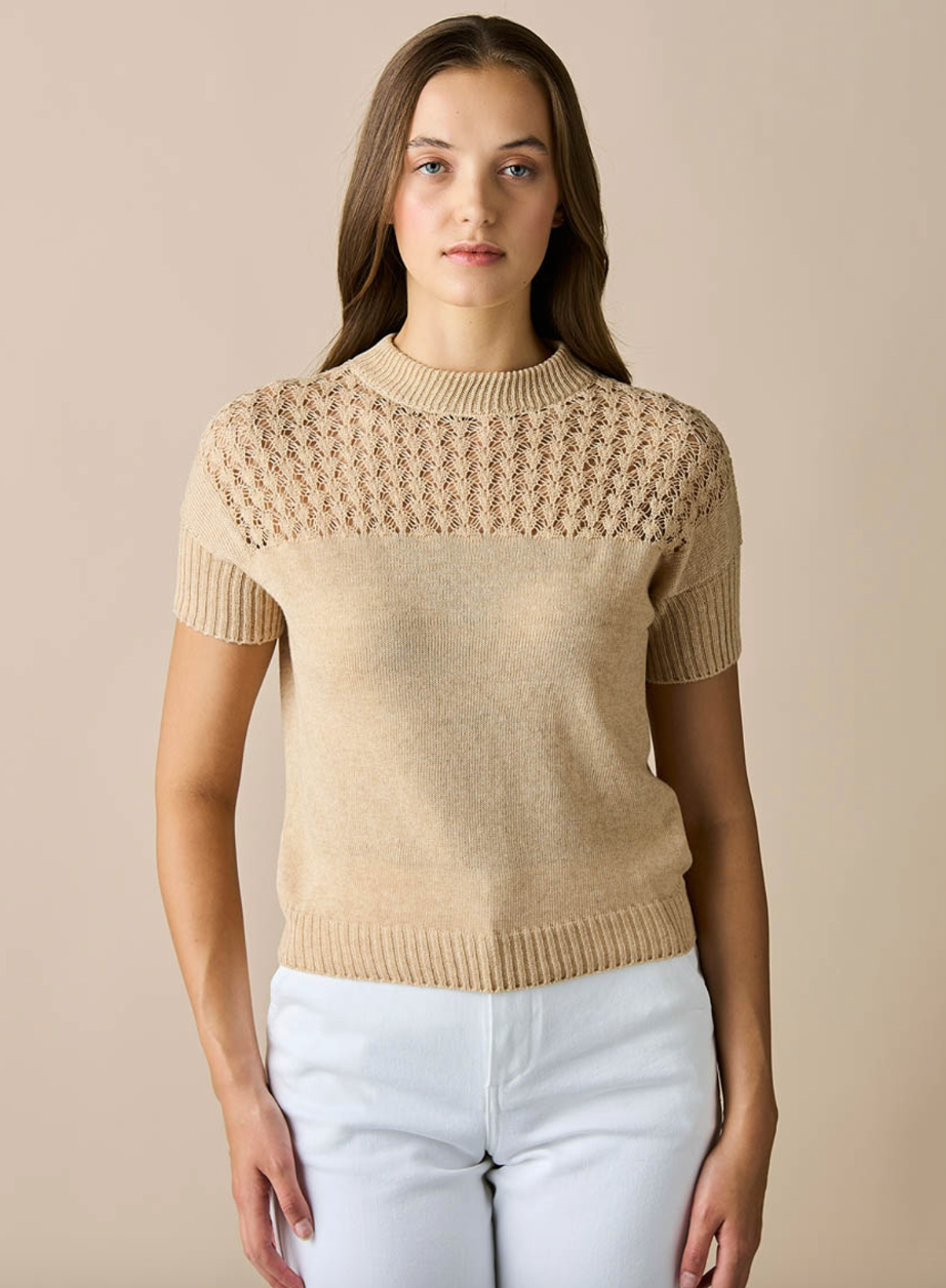 Elevate your summer wardrobe with our stunning knitted Ruby top, featuring delicate crochet-style detailing. This charming piece offers both comfort and sophistication, perfect for any occasion. The cap sleeves add a playful touch, making it an ideal choice for sunny days and breezy evenings. Pair it with your favourite bottoms for an effortless look.