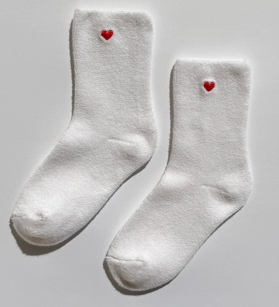Like walking on clouds! These are hands down the comfiest and cutest socks to wear all year long. Made from a fluffy, terry cotton blend yarn that is breathable and unique. While the exterior is fluffy, the interior is smooth and airy. Now finished with an embroidered ankle detail for a little extra charm. Pair them with your favorite clogs or slides and enjoy the extra cushion.