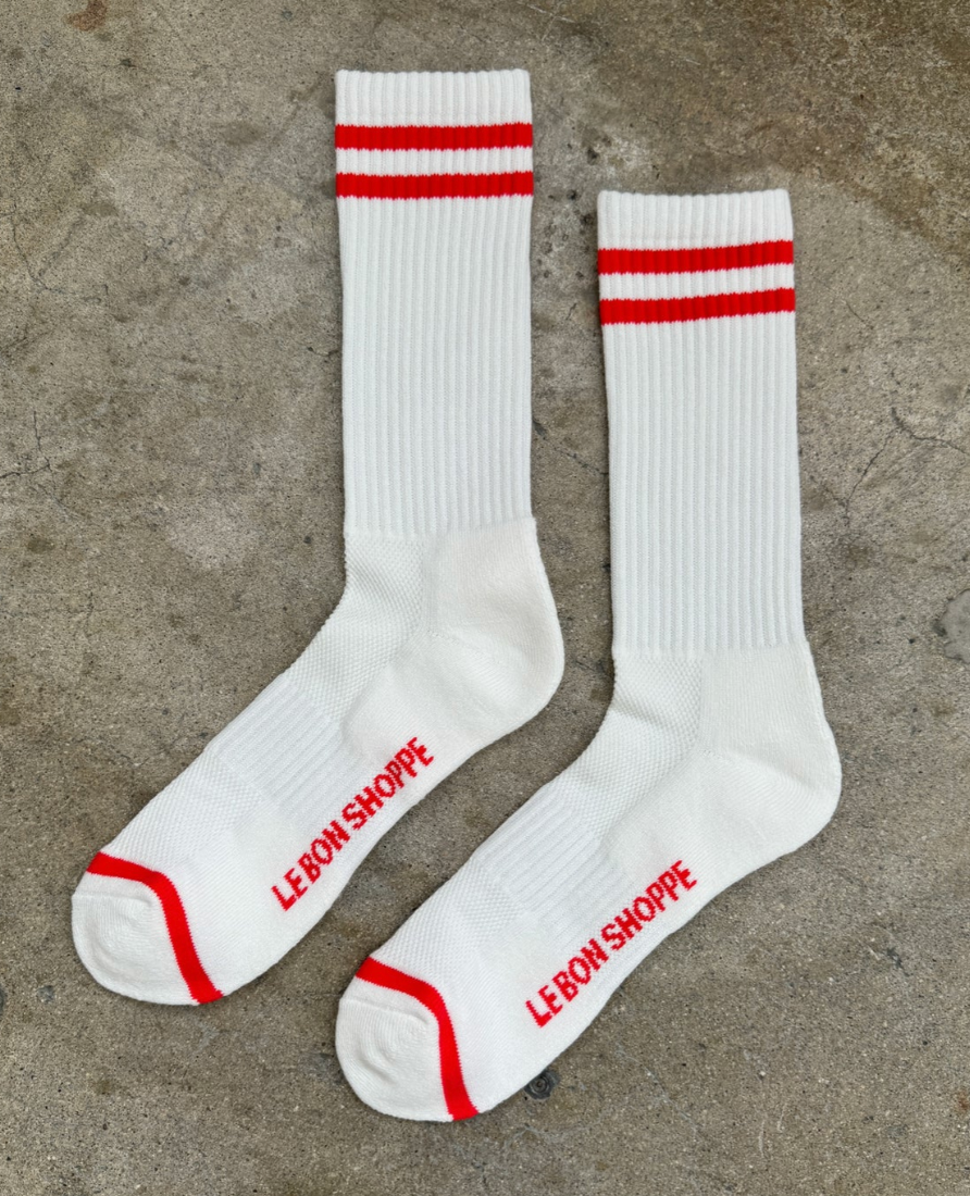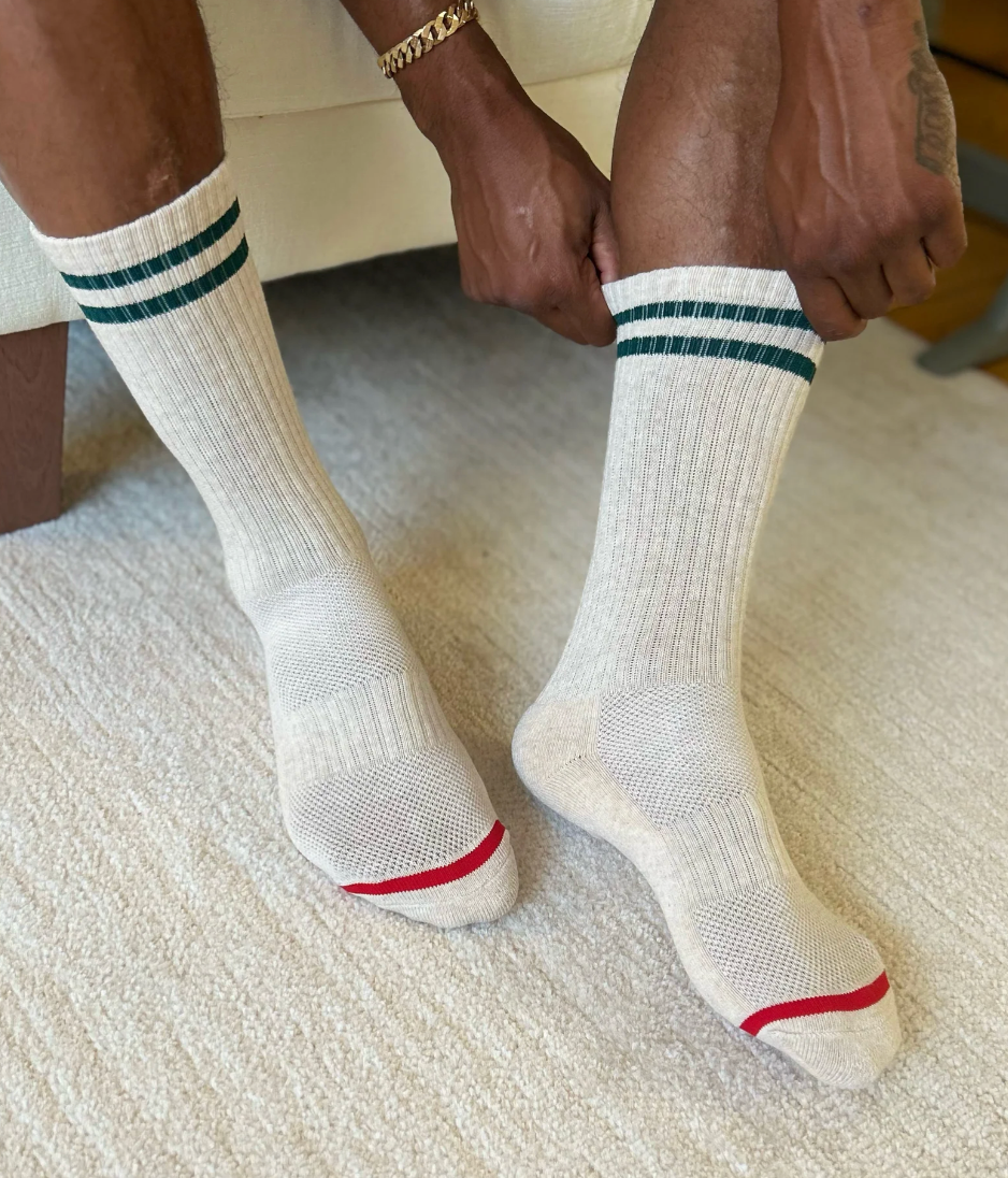 Due to popular demand the Boyfriend Sock was created in extended sizing which is unisex and men friendly! He is the same style as the bestseller and signature style Boyfriend Socks - just slightly bigger all around for larger feet. He has a classic vintage sporty look but can be styled with all of your daytime looks.